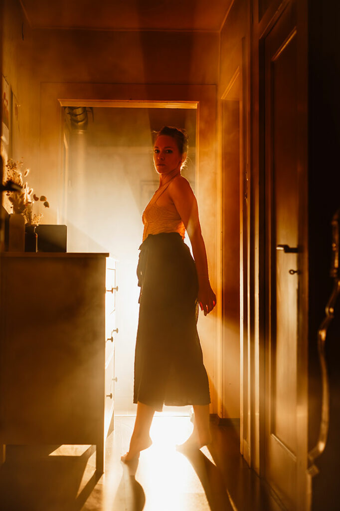 In strong backlighting, where detail disappears and only contour remains, light becomes the primary narrator. Light defines perception. It determines what is revealed, what is obscured and how form is interpreted. In my work as a self portrait artist, light functions as an architectural element rather than a decorative one.
