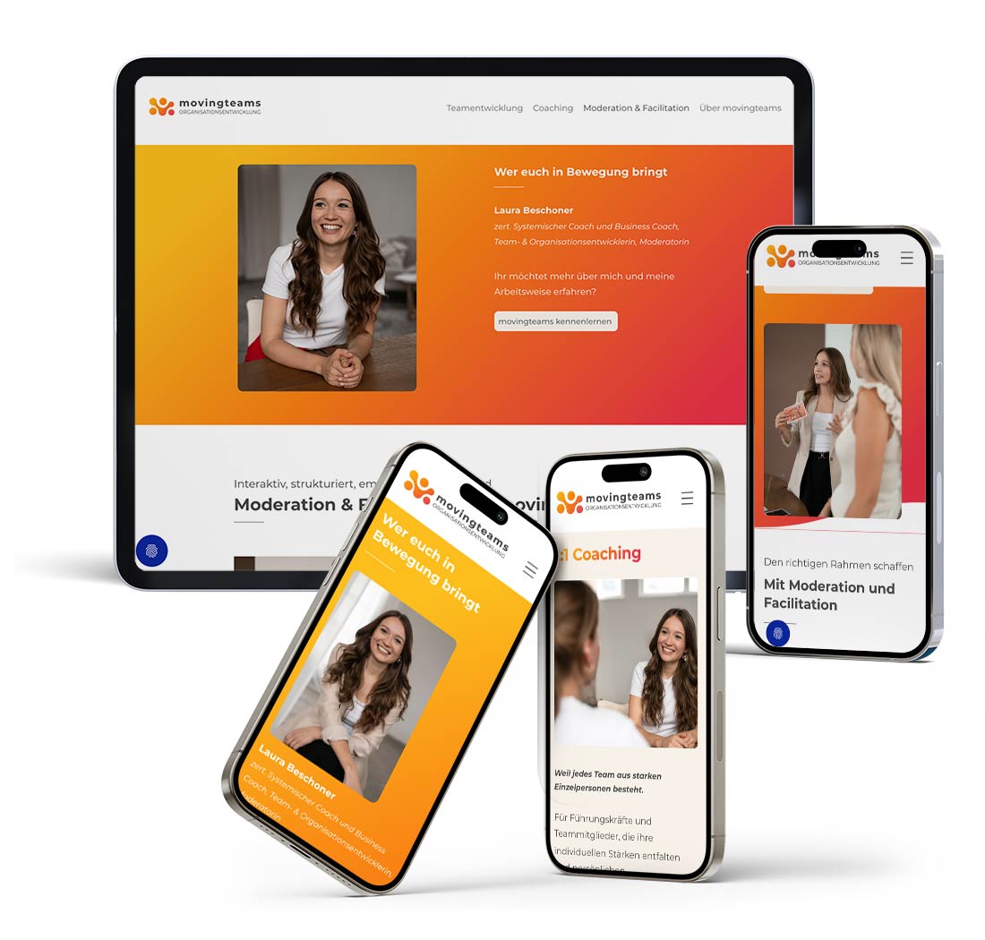 Als erfahrene Coachin begleitet Laura von movingteams Führungskräfte, Teams und Organisationen auf ihrem Weg zu mehr Klarheit, Motivation und nachhaltiger Zusammenarbeit. Mit Formaten aus Teamentwicklung & Teamcoaching sowie Coaching für Führungskräfte und Mitarbeitende schafft sie den Rahmen, um Veränderungen nicht als Belastung, sondern als Chance zu erleben.
